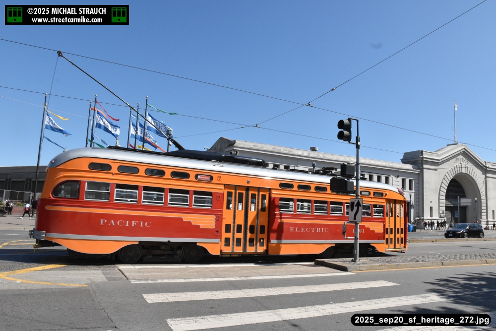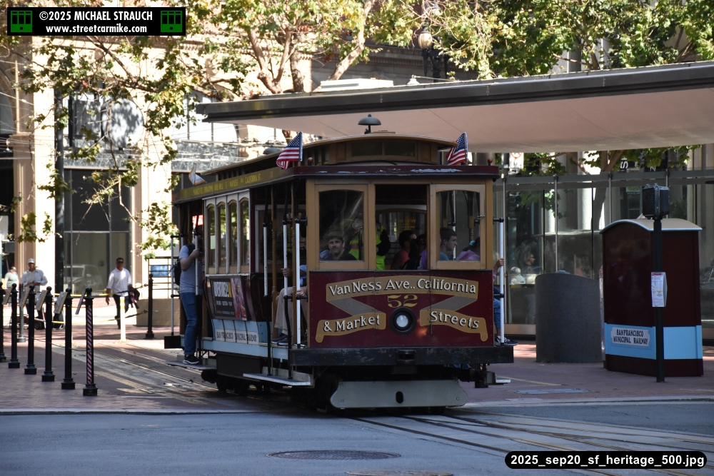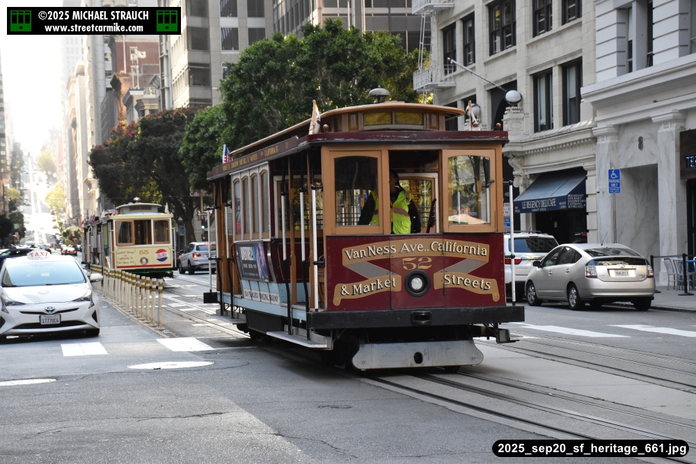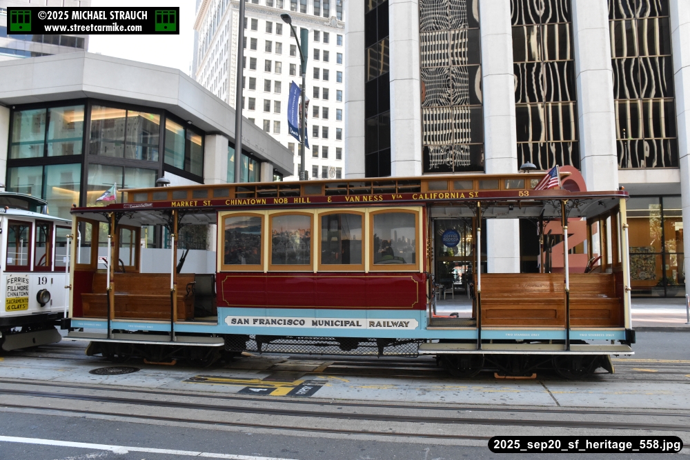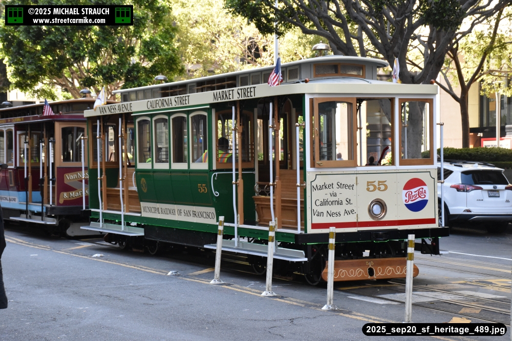 Street, Big 19 and newly restored 55 in Muni 1950s livery were in service.
