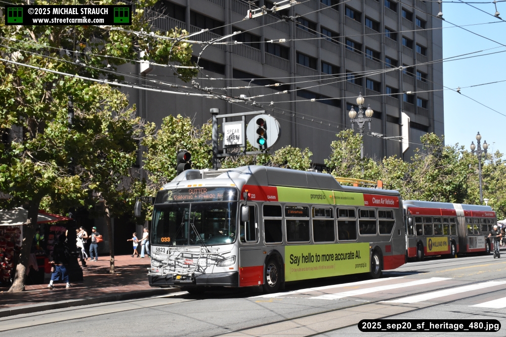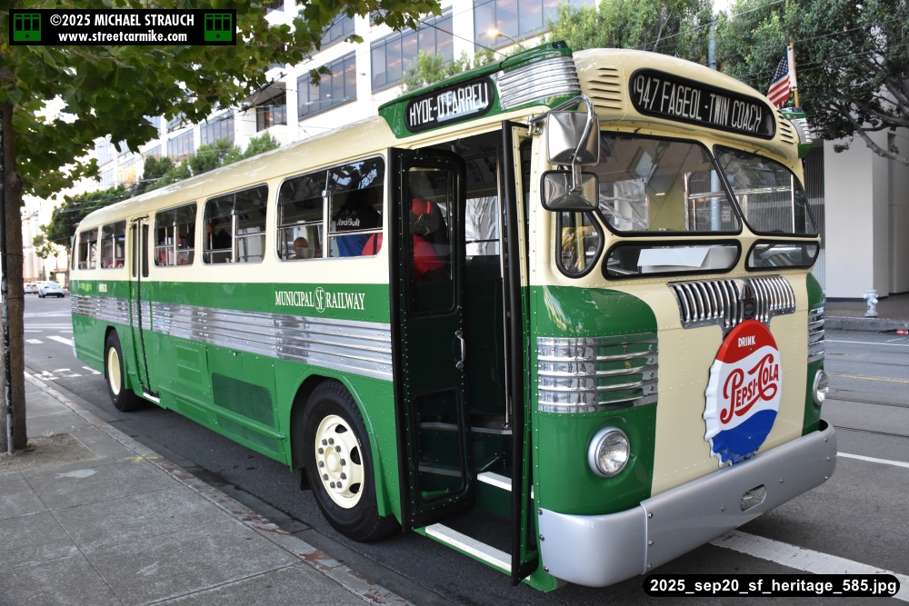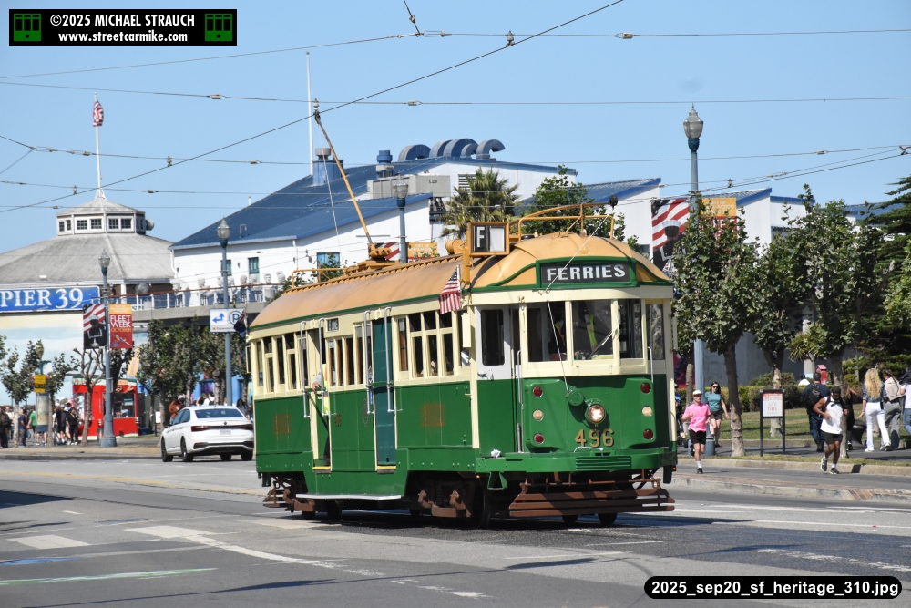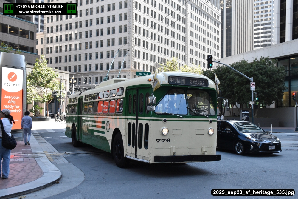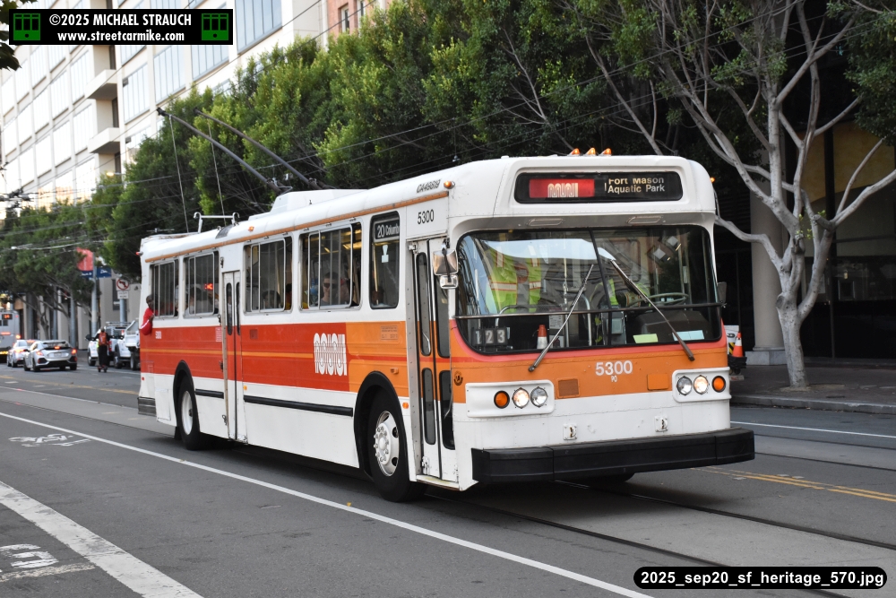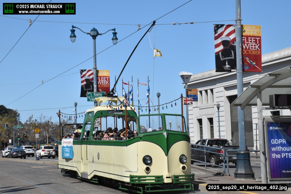 to Pier 39 and back. On the trolley coach side, Marmon 776 and Flyer 5300 were looping out Columbus Ave.