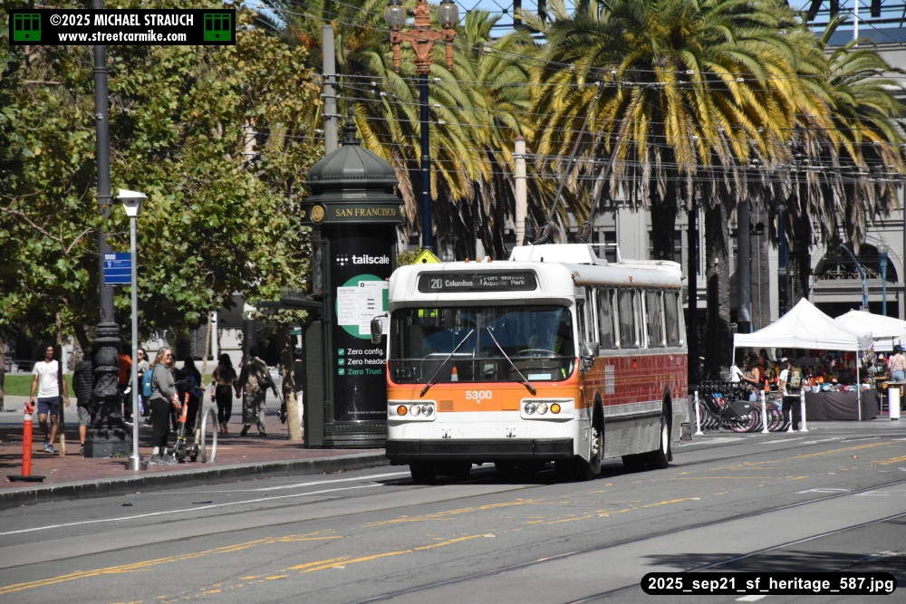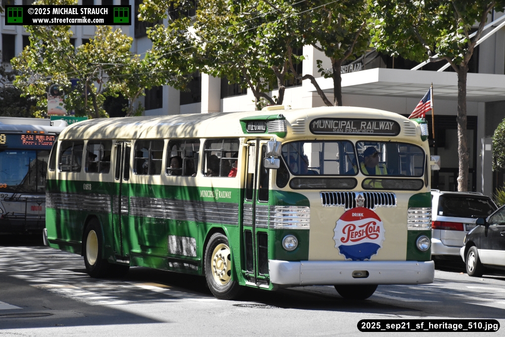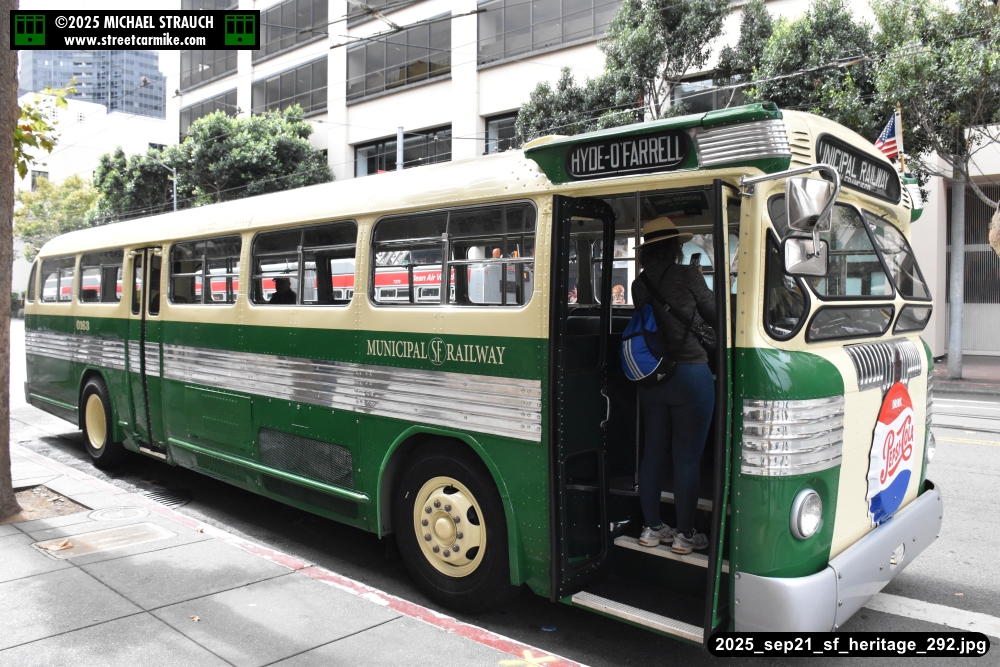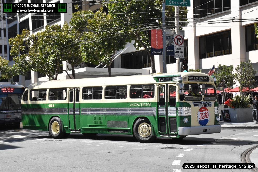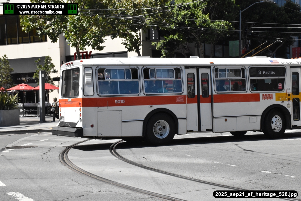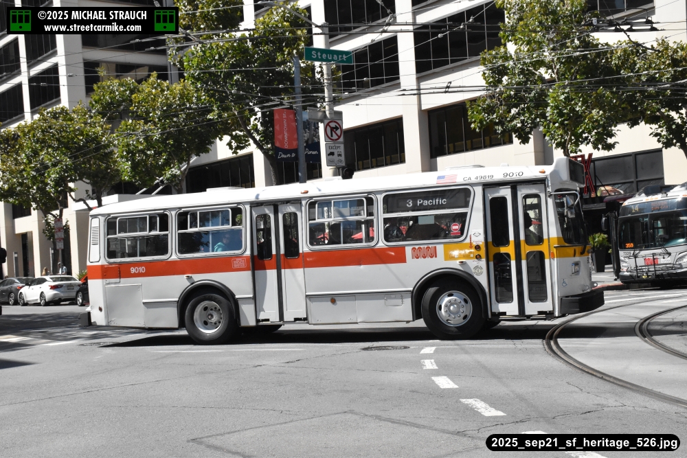 Two rides, on Twin 0163 on the Caltrain route and on Orion 9010 on the Columbus Ave. and North Point
