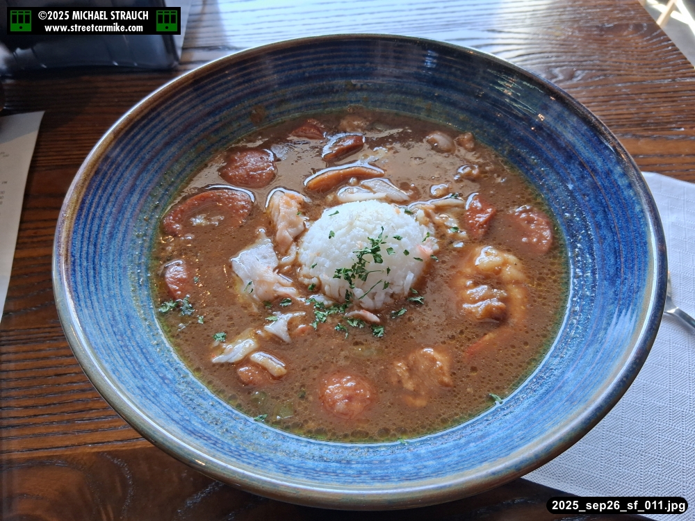 Went out The Embarcadero to Queen's Louisiana Po-Boys to enjoy a bowl of seafood gumbo.