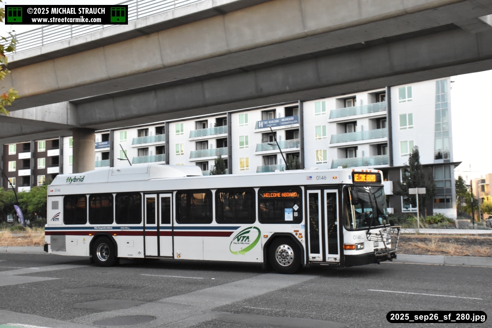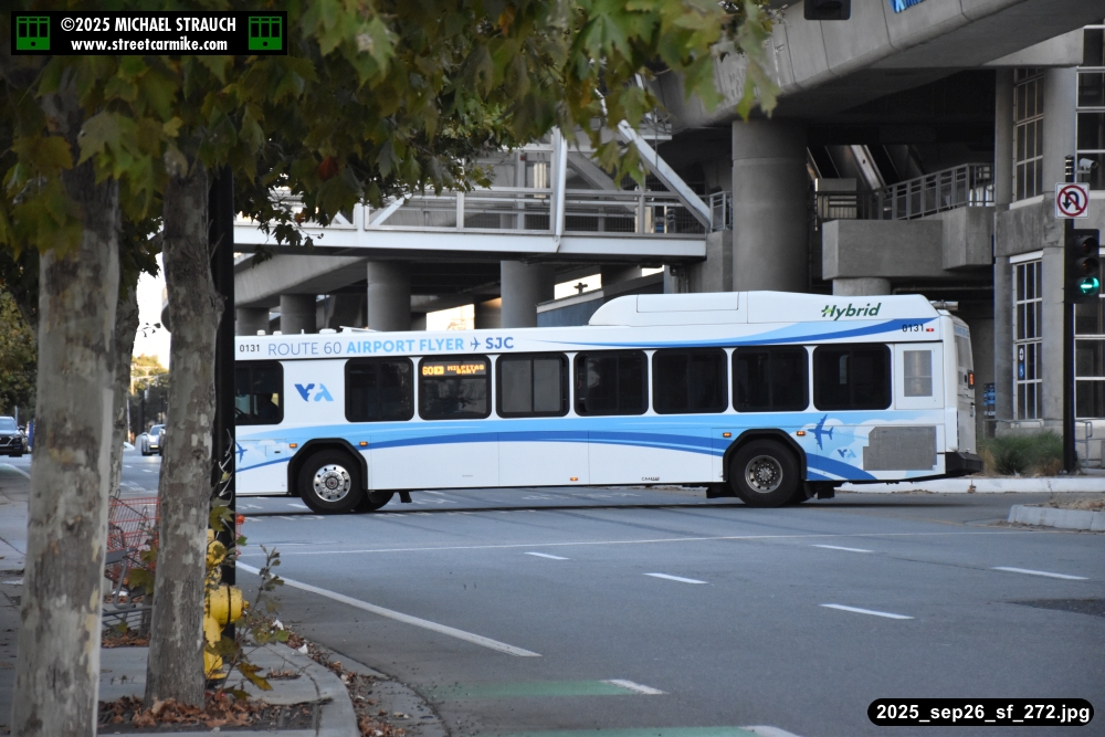to my parked car at Milpitas Station. VTA Gillig 6406 in Pride livery was coming north on the 66,