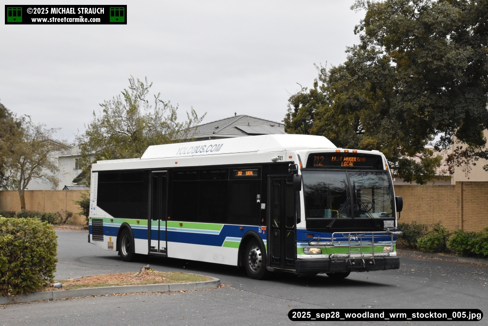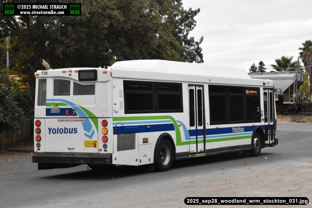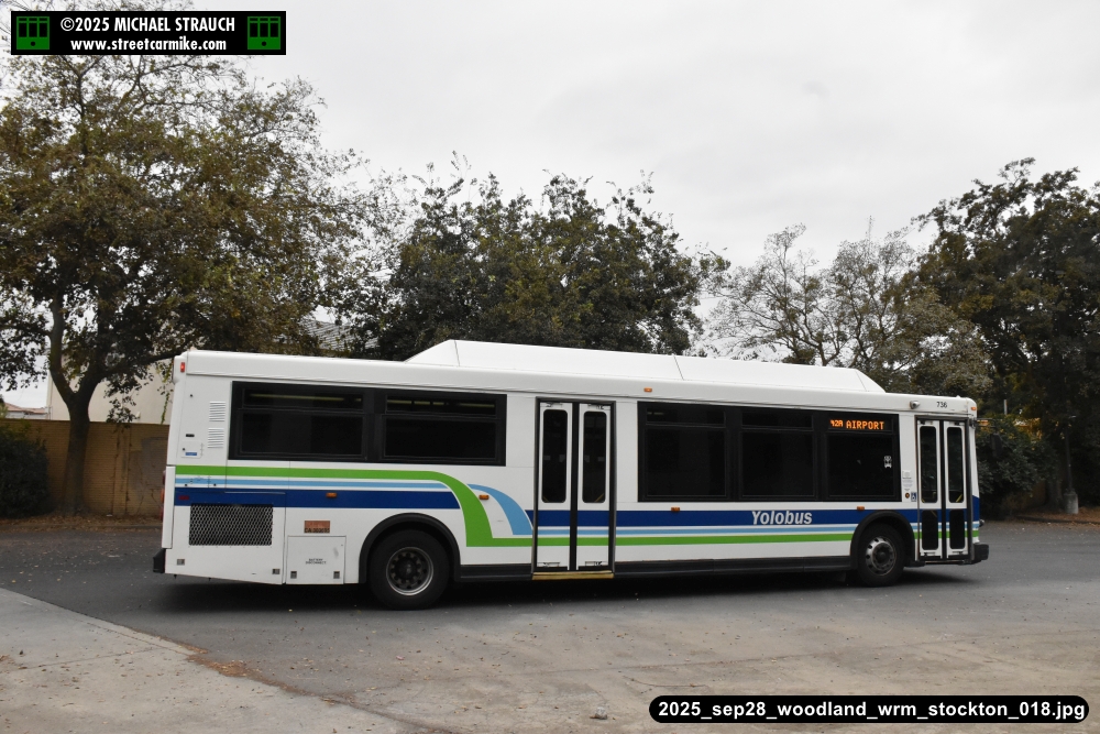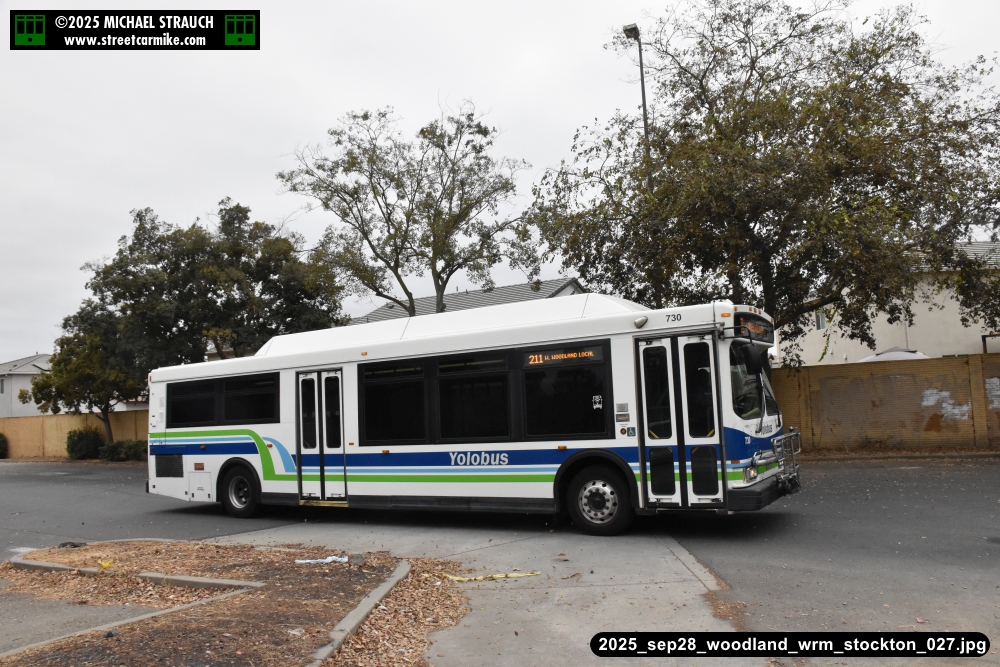 airport to downtown Sacramento. Also at the transit center was Orion 730 on local route 211.