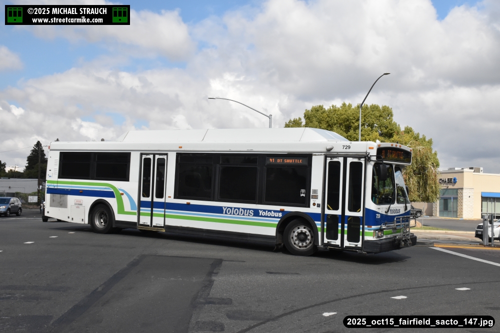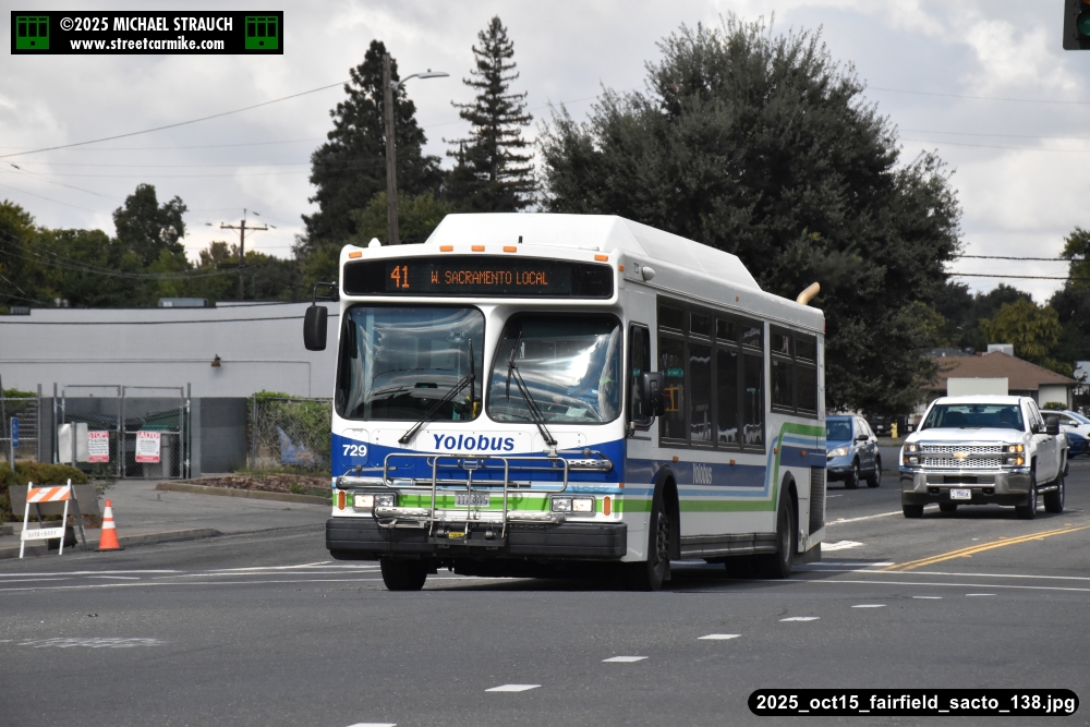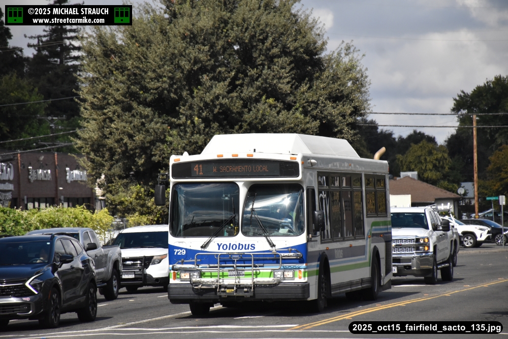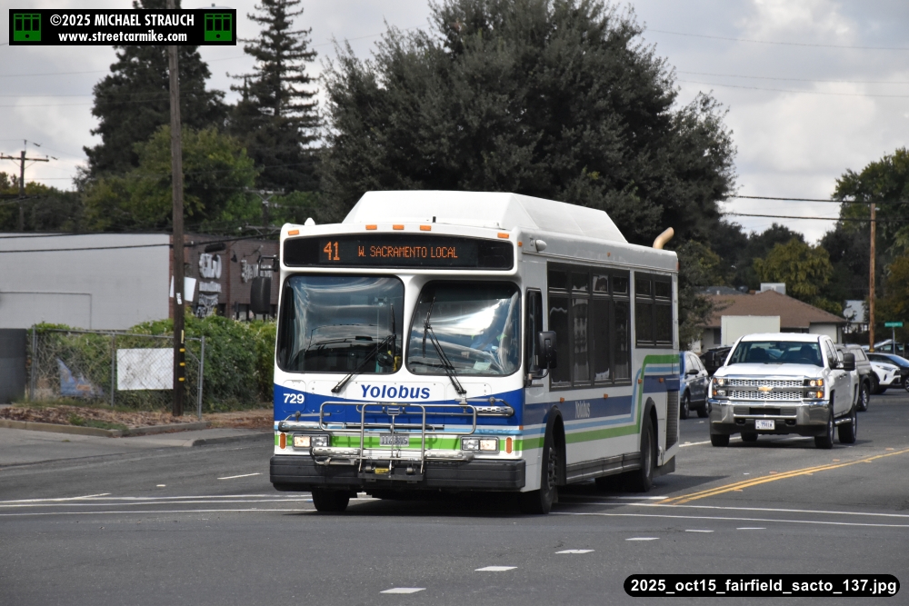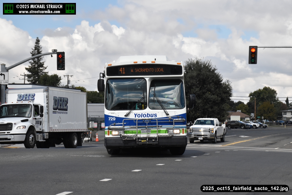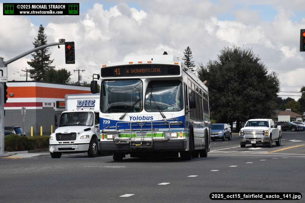 Orion 729 on the 41 line turns from Jefferson Ave. to W. Capitol Ave. in West Sac on October 15, 2025.