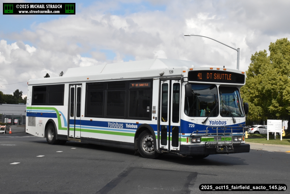 Yolo County Transportation District (Yolobus) bought eight 2003 model Orions numbered 729-736, refurbished 2015-2016, and most are still in service in 2025.