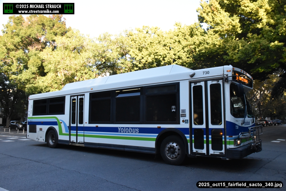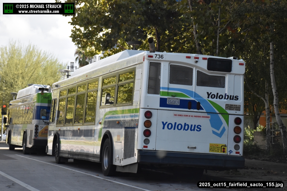 Orion 736 appears to be on standby at W. Capitol and Merkley Aves. (West Sacramento Transit Center) on October 15, 2025.