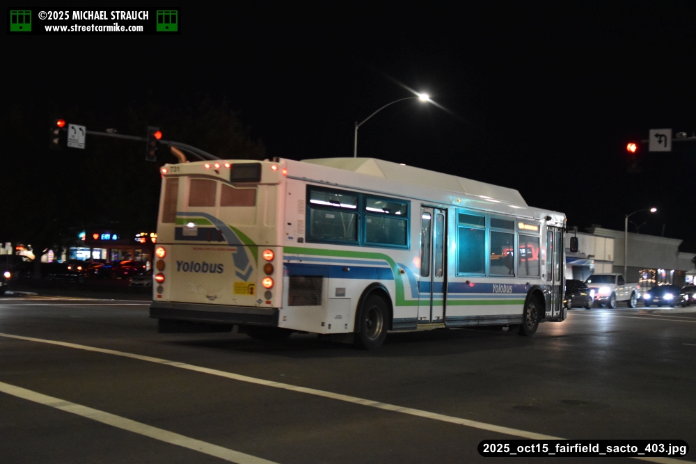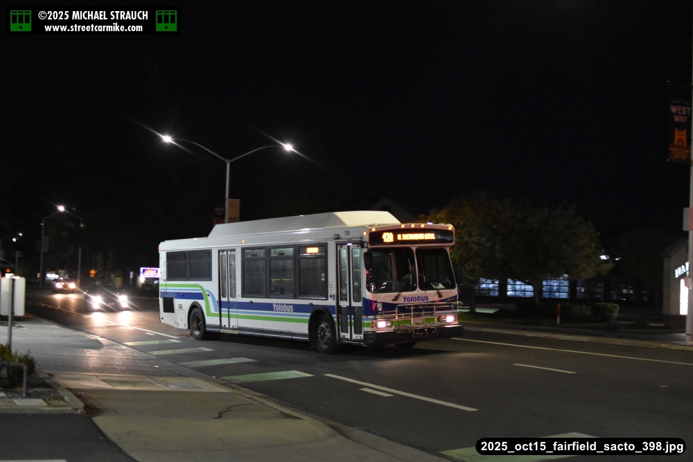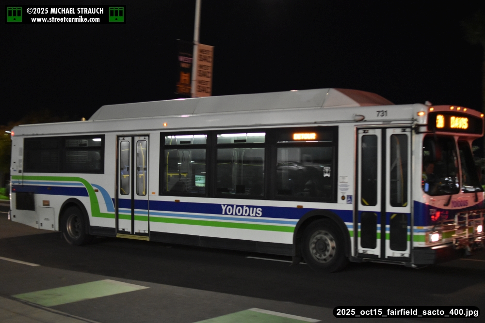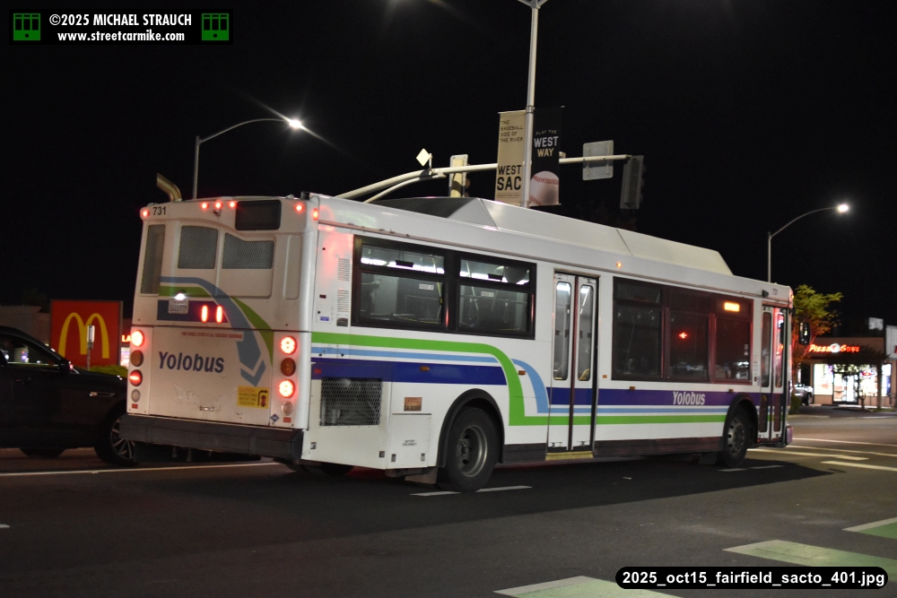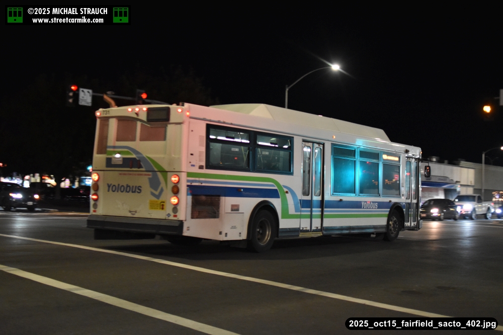 Orion 731 on route 42A clockwise to Davis and Woodland at W. Capitol Ave. and Harbor Blvd. on the evening of